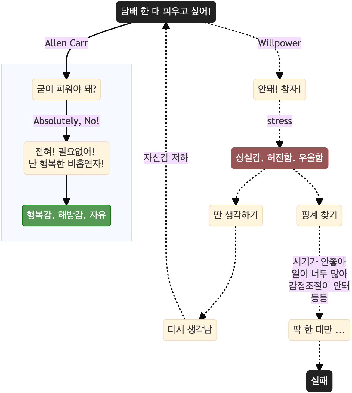 그림2. 알렌카의 핵심 사고 과정 담배로부터 진정 해방되려면, 다음의 2단계가 필수입니다.
