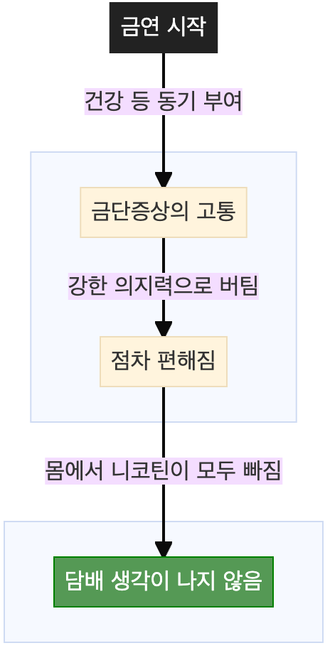 충분히 강한 의지력으로 흡연 욕구와 금단증상만 잘 견뎌대면, 나머지는 저절로 해결될 것이라고 말입니다.